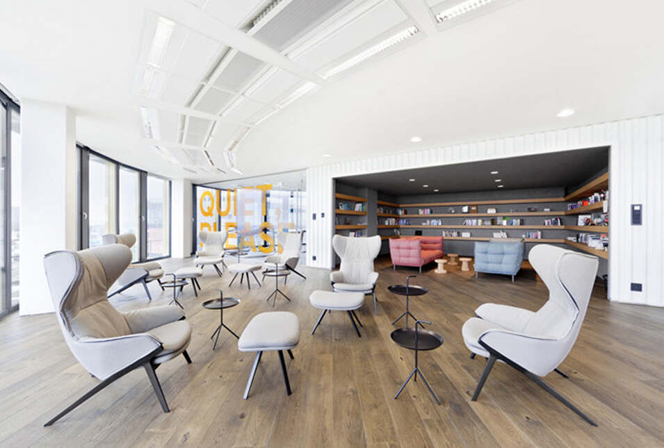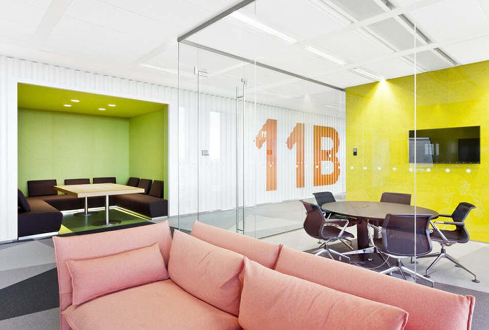 设计介绍:好玩的办公室,体育馆、娱乐室、游戏室、创造放松的空间,石头型的多彩座椅,更显趣味性,粉色的沙发是休息的法宝,并且设置的有图书馆,供人们休息室查阅,软装的座椅舒适,实用,还有用餐区,木质的座椅更加安全,健康,照片墙以绿色为背景显得清晰明了,人性化,设计了体育馆,员工们健身娱乐。