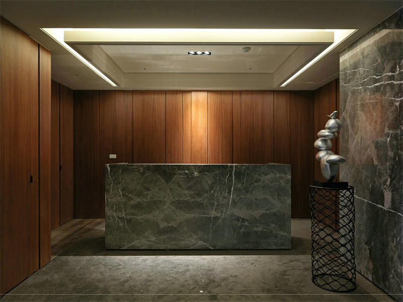 石材就是常常说运用大理石和板岩还有砂岩板进行装饰构成的办公室装饰墙面,这种墙面常在办公室装修前厅、董事长办公室装修设计时运用,不仅容易清理,可以立刻提升办公室装修的档次。
