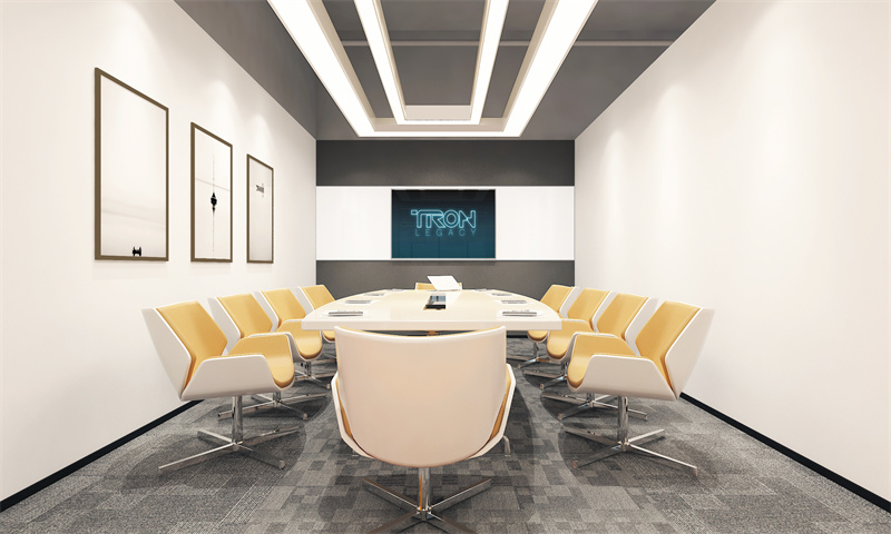 会议室设计,除了要注意布局之外,还要重视色彩搭配,设计时可以跟办公室的整体色调一致,大的会议室整体氛围相对来说是比较严肃的,因此在墙面设计方面,应当以简洁为主不宜过于活泼或是华丽。