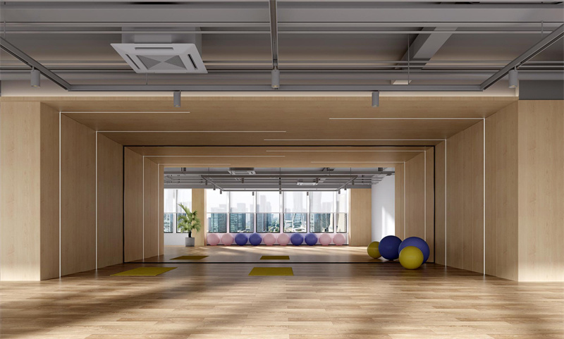3、最后如果想要在办公室内设置健身房,要在满足基础功能的前提下进行合理规划。健身房的地面因为人流多的原因,可以使用耐磨防水的PVC材质进行铺贴,顶面省预算的话也可以使用裸顶代替,墙面可以不使用除乳胶漆以外其他材质,所以如果空间富足规划一个办公室内的健身房不仅好处多多而且装修也更加方便。