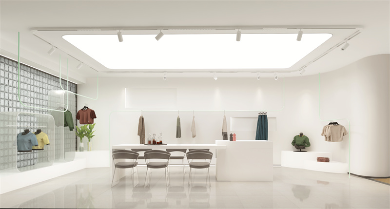 其次展厅的布置要和办公室一体化要在色调、风格、材料的选择上要相统一。展厅的材料和色调不宜和办公区相差太远,出现明显的区域划分而导致展厅是展厅办公区是办公区。对于展厅的划分,可以使用天花造型和地面过道材料的对比表现出的效果进行划分。对于色调大方向要统一明度,避免出现色彩明度失衡使人眼花缭乱,如果把握不准可以大面积使用白色进行装饰和小范围灰色对比突出空间层次性。