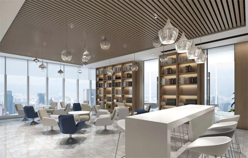 最后对于办公室软装可以使用个性化的家具和装饰,例如休闲区的休息座位可以使用独特的卡座和散座结合的形式使用,一些墙面的柜子也可以嵌进去一些卡座让功能更多样化。走道的墙面可以结合企业属性,局部装饰灯条和使用企业色涂饰,比起传统的平庸的通道设计,能够更让人耳目一新引人注目。