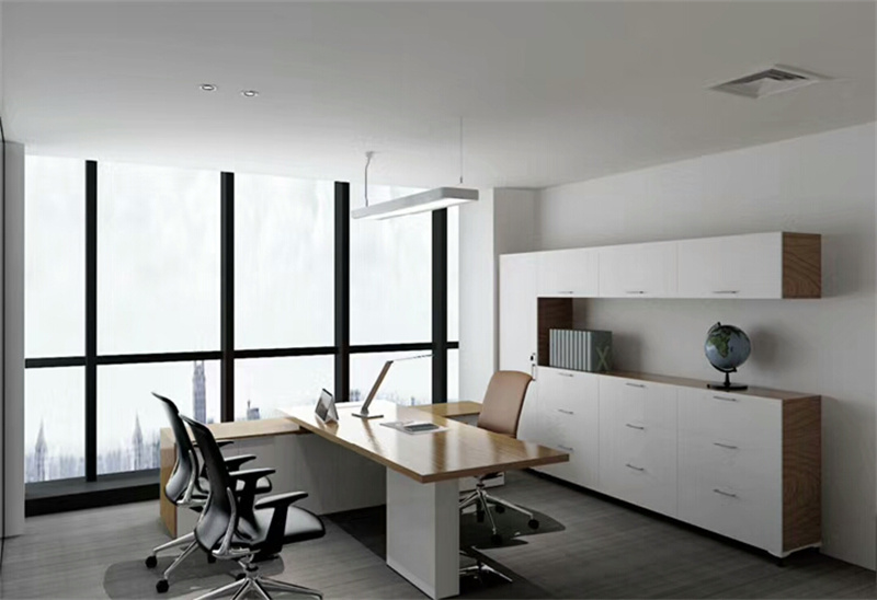 很多家具公司装修设计短隔断家具,可以把几个办公桌用隔断的方式连接起来,组成一个小组。我们可以在布局中巧妙地将这些小群体组合成直排或斜排,让办公室装修设计在变化中达到合理的要求。另外,办公室橱柜的布置要尽可能依靠“墙效”,即橱柜尽量靠墙,这样可以节省空间,也可以让办公室更加规整美观。