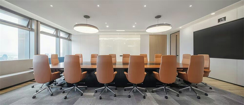 空间用简单硬朗的直线装饰。线性装饰的运用,既体现了现代人对简约生活的追求,又展现了中式家具内敛简约的海派办公设计风格,使现代中式风格更加实用现代。