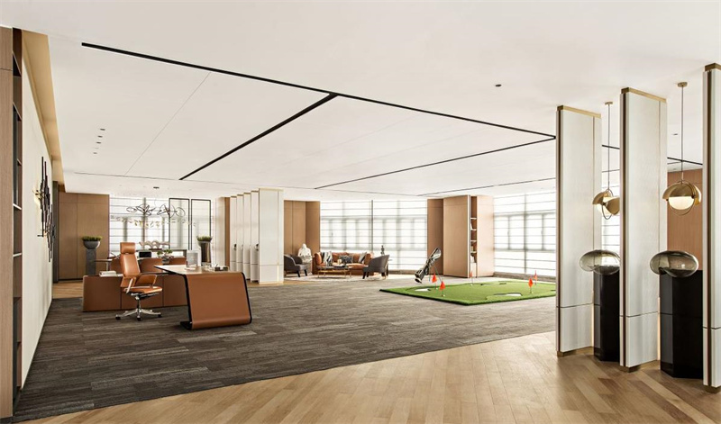 办公室装饰的大厅一定要体现企业的经济实力和档次。装修设计的时候要从容淡定,最好能表现出空间的高档感。在杭州办公装修公司的办公装修中,办公大厅的地面一般都是用大尺寸的大理石铺设,给人的感觉比较高档,尤其是大理石表面的光泽会给人一种非常高档的视觉效果。大厅顶面可以挂几何图案,设计简洁大方,突出整个空间的层次感。