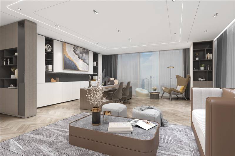小办公室宜采用灵活性高的开放式办公室,既节省空间,又能使整体视觉效果更加宽敞。但要注意保持每个工位的相对私密,减少干扰和相互影响,提高工作人员的办公效率。