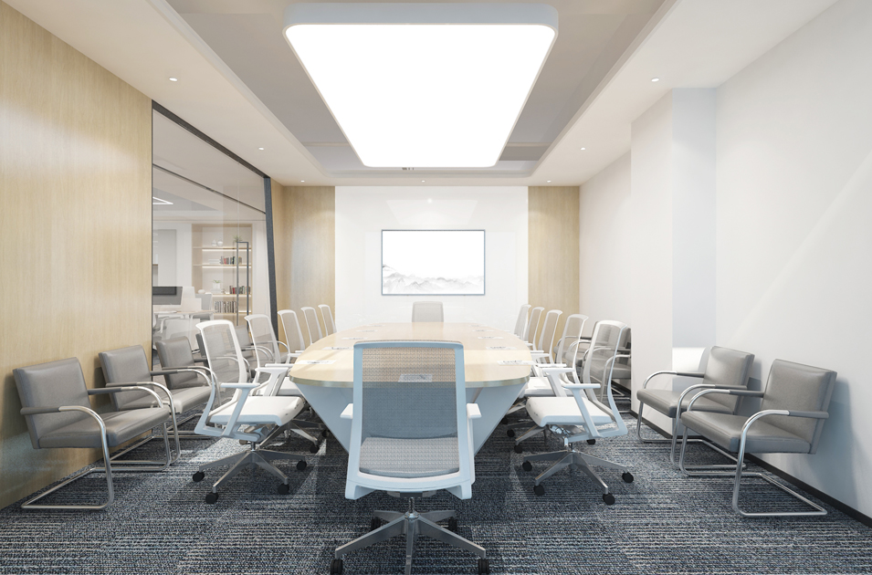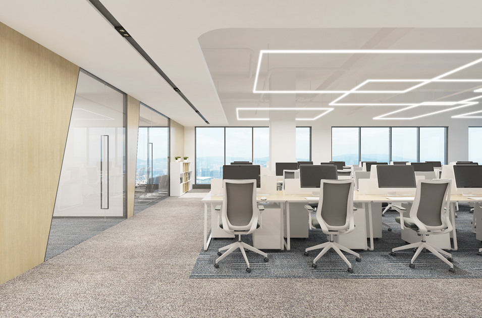 设计介绍: 采用现代简约的办公室装修的风格,会议室注重灯光效果,空间布局格外明亮,休息区,使用个性吊灯,与空间里的家具,橱柜相得益彰,开放的办公空间,线流形状的灯光环绕在上空,不仅给办公室员工提供良好的灯光照明,还成为整体装点一大亮点,在这样的办公空间,在此给人的感觉就是宁静,让人焦躁的心情瞬间平静下来,使用了灰黄色的地毯,更好的与前台的背景墙完美搭配,整个空间构筑一幅完整和谐的画面!